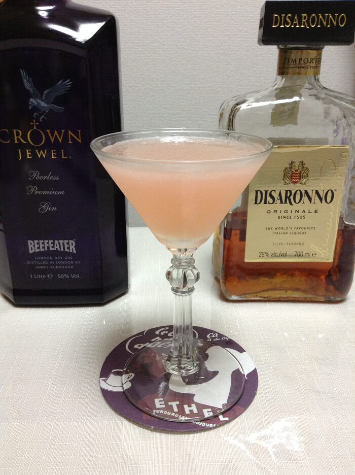味の方はドライジンとレモンジュースという爽やかなレシピにアマレットの風味とグレナデンシロップの甘味がほのかにアクセントを加えています.