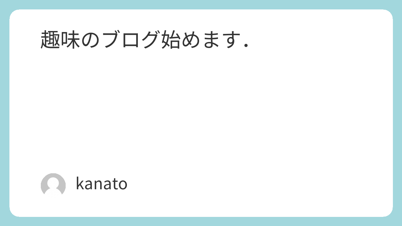 こんばんは,kanatoといいます.(もちろんハンドルネームです)