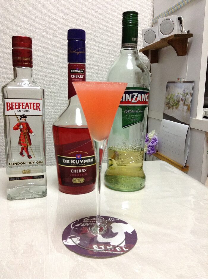 ドライジンにチェリーの甘味,ドライ・ベルモットの爽やかな香り,レモンのすっきりとした酸味を加えてシェークすることで丸みを帯びたバランスの良い味わいのカクテルになっています.