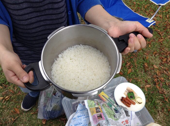 晩ご飯は白ごはんを圧力鍋で炊いて,
