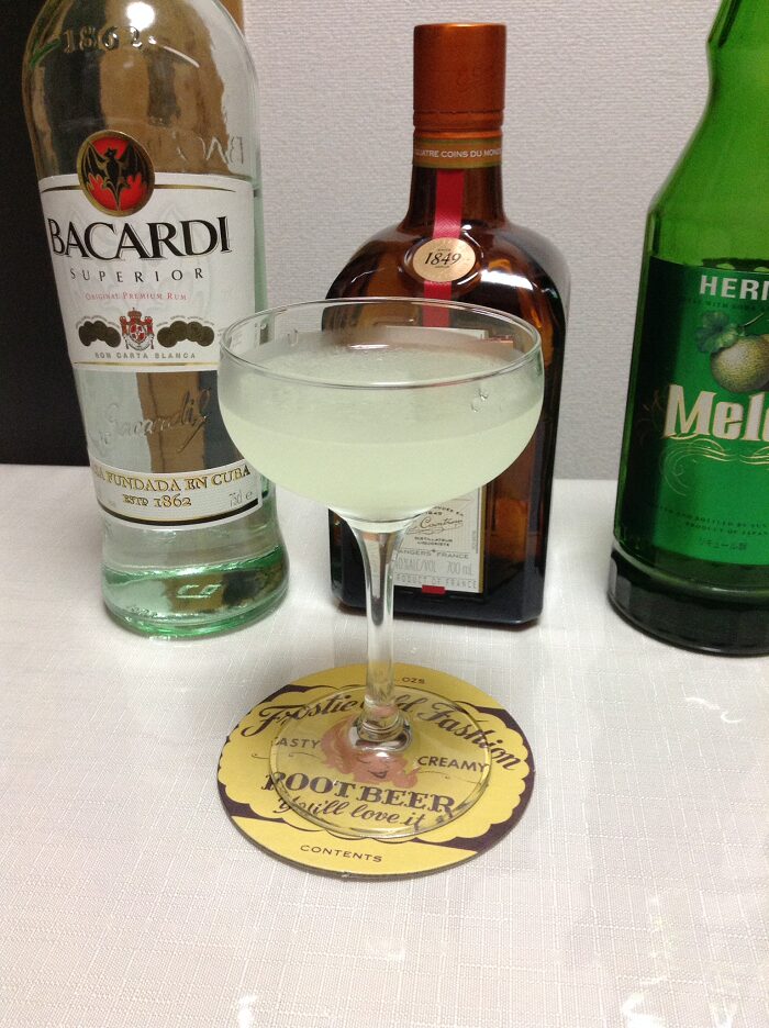 ベースがラムとコアントローですが,意外にもメロンの甘味が個性的なアクセントを加えています.