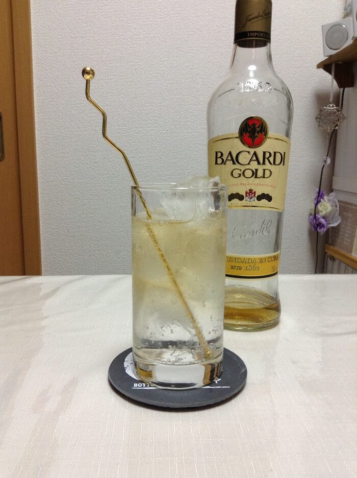 今回はゴールド・ラムに「バカルディ ゴールド(オロ)」を使用しました.やっぱりラムはバカルディですね.