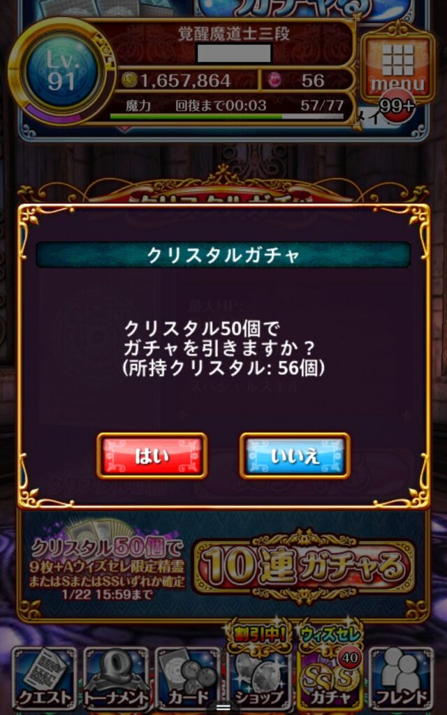 とは言いながら,今回はようやくクリスタルが50個貯まり,ウィズセレ限定精霊も出ると言う事で,