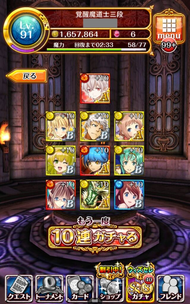 【ゲーム・黒猫のウィズ】クリスタル10連ガチャの結果
