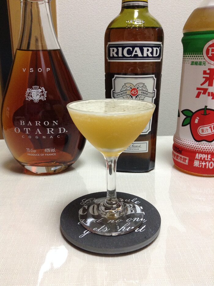 ブランデーをアップルジュースで割り,香りづけにペルノを垂らしたカクテルです.